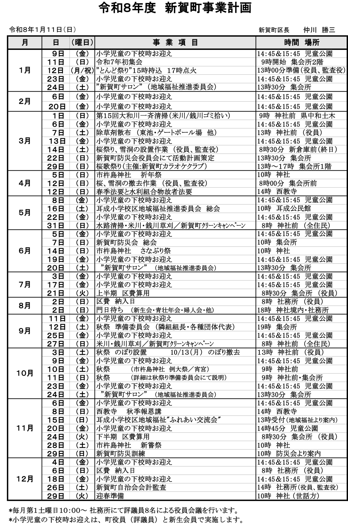 令和8(2026)年度 年間の行事予定表